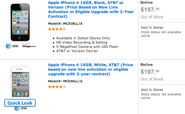 Walmart는 6월30일 까지 iPhone 4 16GB 모델을 147달러 (2년 계약시)에 판매한다고 전하고 있습니다. iPhone 4 16GB 모델의 정상 가격은 197 달러입니다.