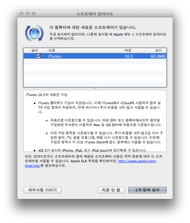 iTunes 클라우드 기능이 지원됩니다. 이제 iTunes에서 iCloud에 사용자의 음악 및 TV 구입 항목이 저장되며, 언제 어디서나 추가 비용을 내지 않고 사용할 수 있습니다.