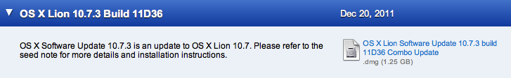 Apple은 Mac OS X Lion 10.7.3 Build 11D36 업데이트를 개발자들에게 배포하고 있습니다.