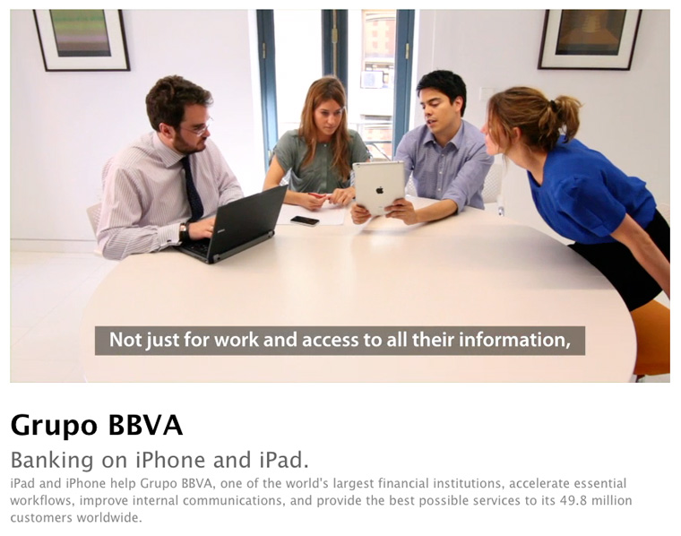 미국 Apple사에서 iPad를 이용한 비즈니스 사례에 Grupo BBVA, The GoodLife Team 을 소개하고 있습니다.