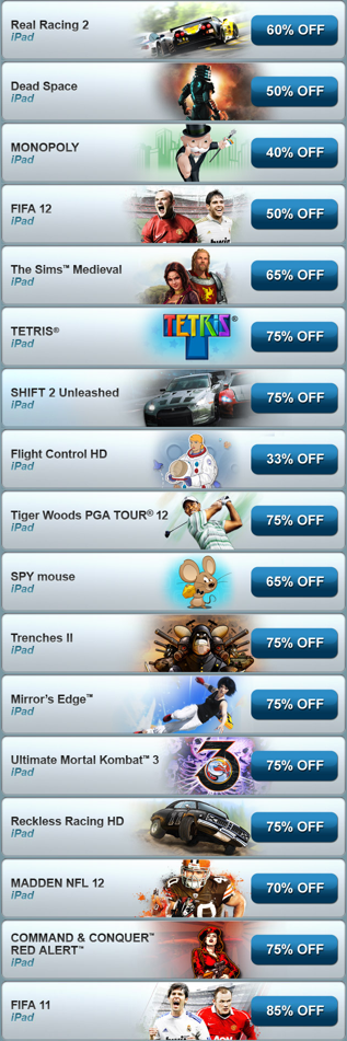 EA에서 iPad 용 게임 할인 이벤트를 진행 하고 있습니다.