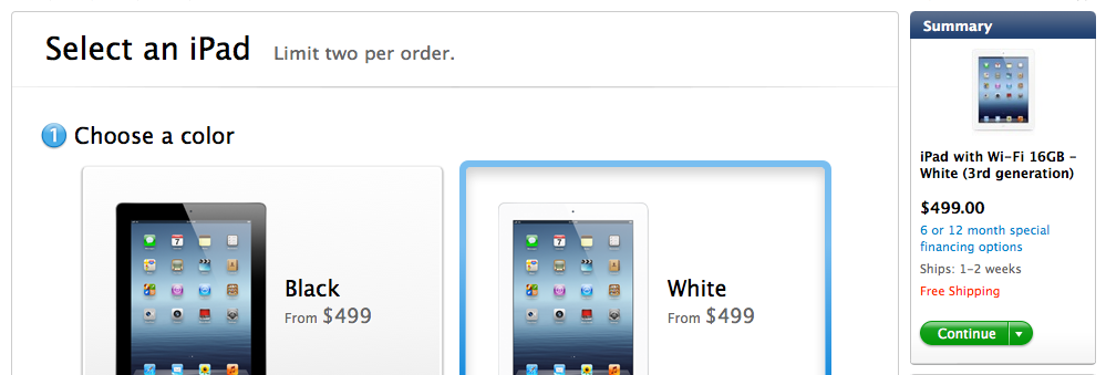 온라인 Apple Store에서 3세대 iPad의 출하 예정일이 2~3주에서 1~2주로 변경되었습니다.