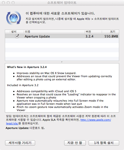 Apple사에서 Aperture 3.2.4를 배포하고 있습니다.