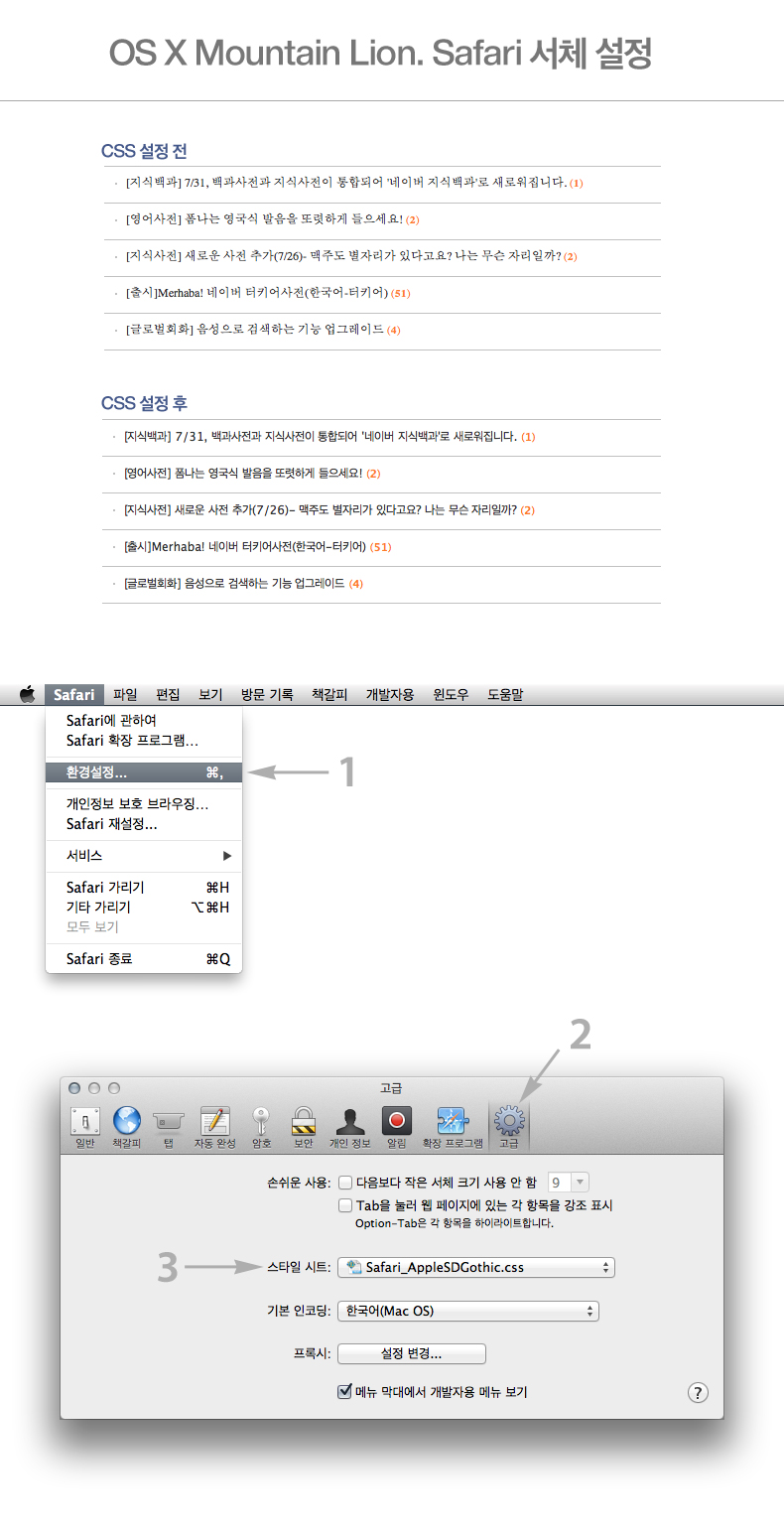 1. 첨부된 Safari_AppleSDGothic.css 다운로드
