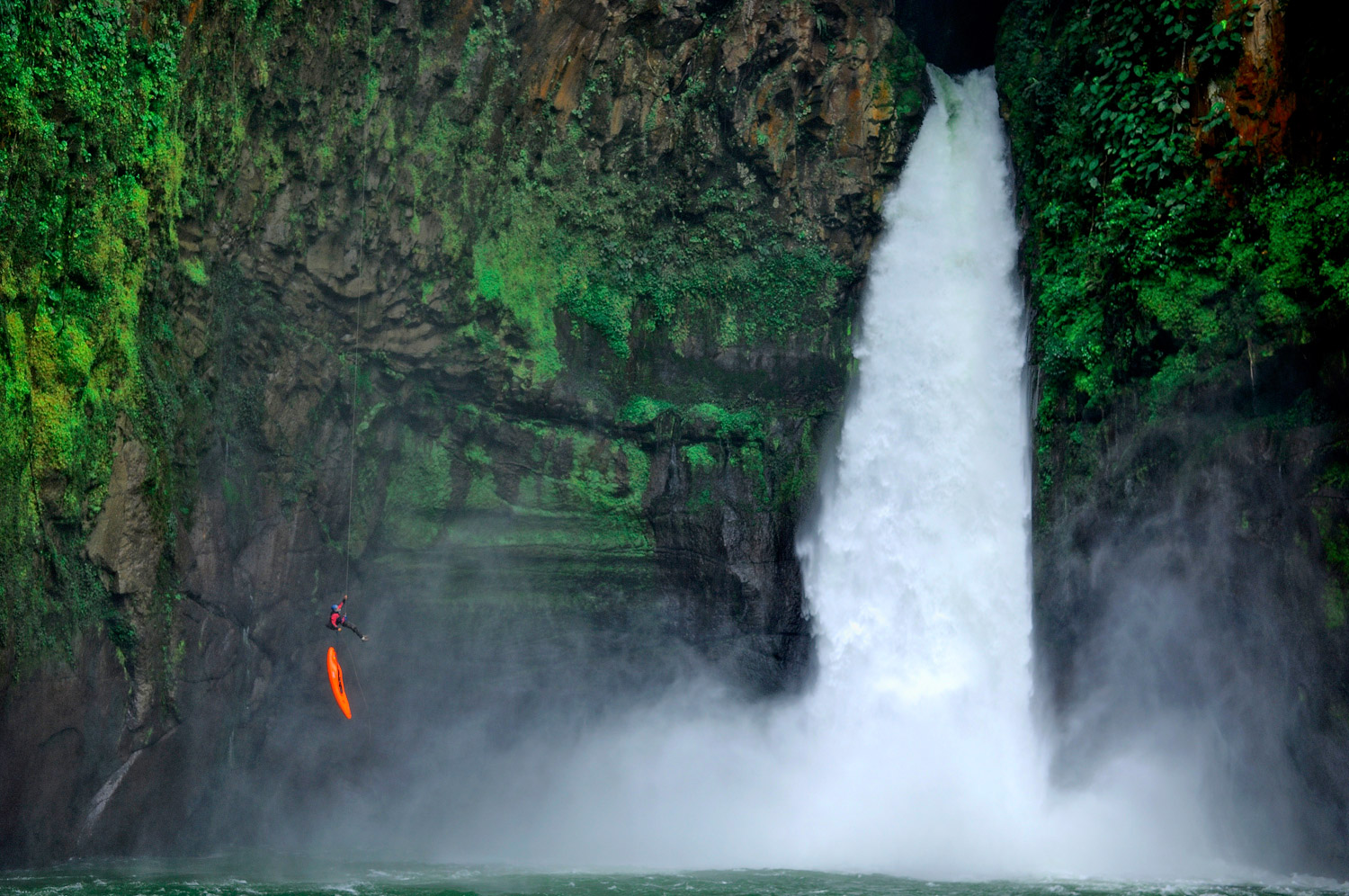 “자유 낙하하는 4초 동안 3개의 프레임에서만 Rafa를 볼 수 있었습니다. 폭포 아래로 떨어지자 하얗게 부서진 급류가 Rafa를 덮어버렸기 때문이죠.”라고 Gilman은 말합니다. “사진을 찍기엔 너무나도 짧은 순간이었습니다. 두 번의 기회는 없었죠. 다시 촬영할 수 없었어요. Rafa에게 다시 올라가서 떨어지라고 부탁할 수는 없잖아요.”