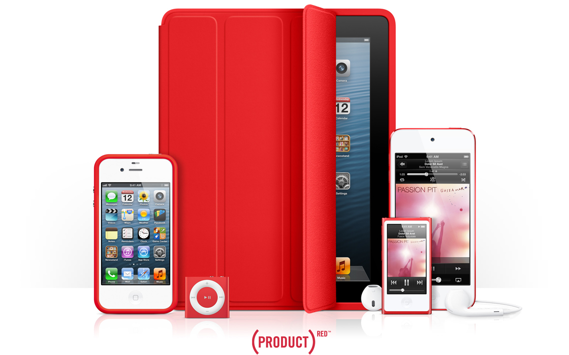 (PRODUCT) RED iPod shuffle, iPod nano, iPod touch, iPad Smart Cover. iPad Smart Case, iPhone Bumper를 구입하시면 당신도 AIDS 퇴치 프로그램에 동참하실 수 있습니다.