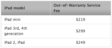 Apple은 지원정보 란에 iPad mini와 4세대 iPad의 보증 대상 제외 수리 비용에 대한 지원문을 업데이트 하고 있습니다.