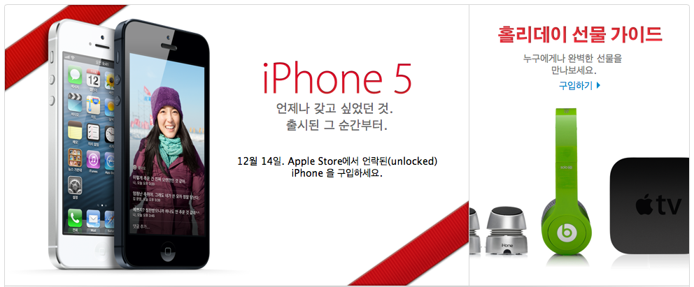 한국 Apple Online Store에서는 iPhone 5의 언락 버전을 12월 14일 부터 판매한다고 안내하고 있습니다.
