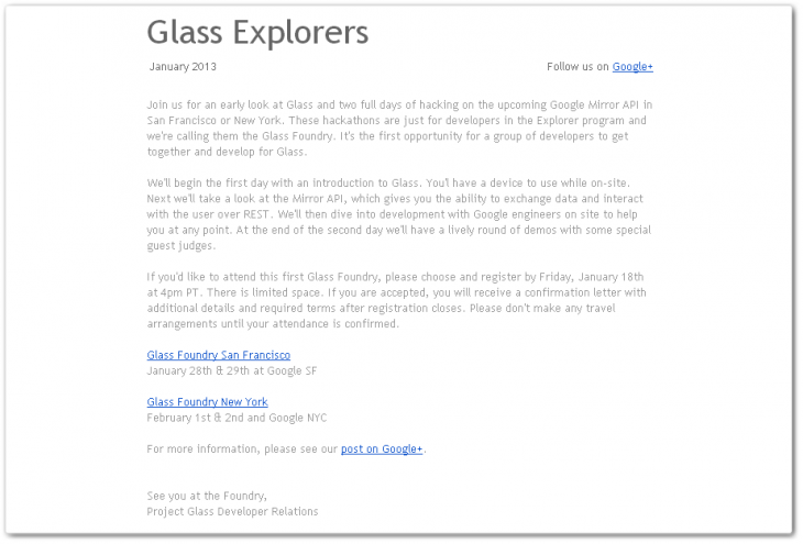 http://thenextweb.com/google/2013/01/16/google-sends-invites-for-first-two-project-glass-hackathons-coming-in-january-and-february/