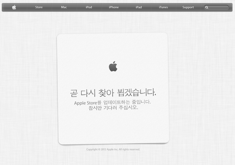 Apple Online Store. 점검중입니다. 2025년 04월 17일2013년 02월 27일 작성자: KMUG 케이머그 Apple Online Store. 점검중입니다. 정기 점검일까요, 뭔가 나오는 것일까요? http://store.apple.com/kr 공유: X에 공유 (새 창에서 열림) X Facebook으로 공유하기 (새 창에서 열림) Facebook Pinterest에 공유 (새 창에서 열림) Pinterest 친구에게 이메일로 링크 보내기 (새 창에서 열림) 전자우편 Threads에 공유 (새 창에서 열림) Threads Bluesky에 공유 (새 창에서 열림) Bluesky 이것이 좋아요:좋아하기 가져오는 중... 관련 KMUG 케이머그에서 더 알아보기 구독을 신청하면 최신 게시물을 이메일로 받아볼 수 있습니다. 이메일 주소 입력… 구독