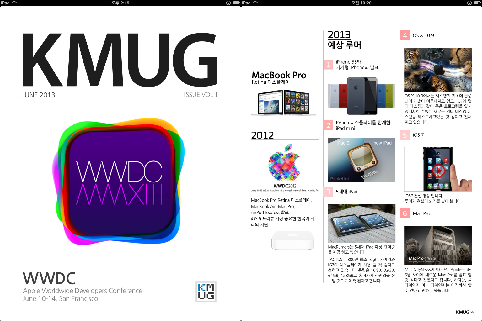 애플 전문 디지털 잡지 ‘케이머그(KMUG)’가 창간된다. 국내 매킨토시 최대 포털 사이트인 케이머그는 내달 초 맥과 아이폰 사용자를 위해 디지털 매거진 케이머그를 선보인다고 밝혔다.
