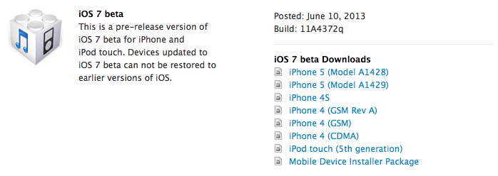 Apple은 개발자 사이트를 통해 iOS 7 Beta 11A4372q의 다운로드를 제공하고 있습니다.