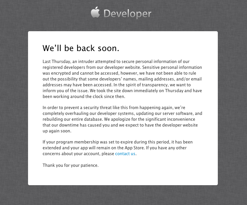 Apple은 디벨로퍼 사이트에 침입 흔적에 대하여 전하고 있습니다.