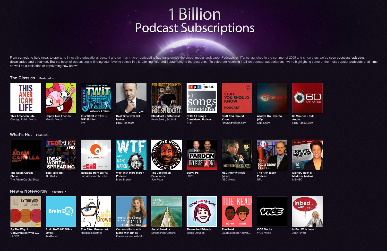 Apple은 iTunes가 Podcast의 가입자 수가 10억건을 돌파했다고 발표하였습니다.