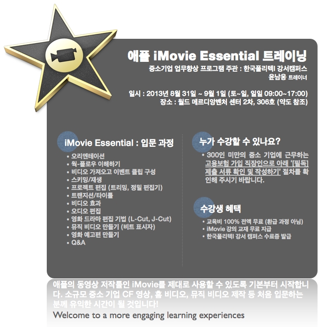 애플 iMovie 에센셜 무료 강좌 안내가 있어 알려드립니다.