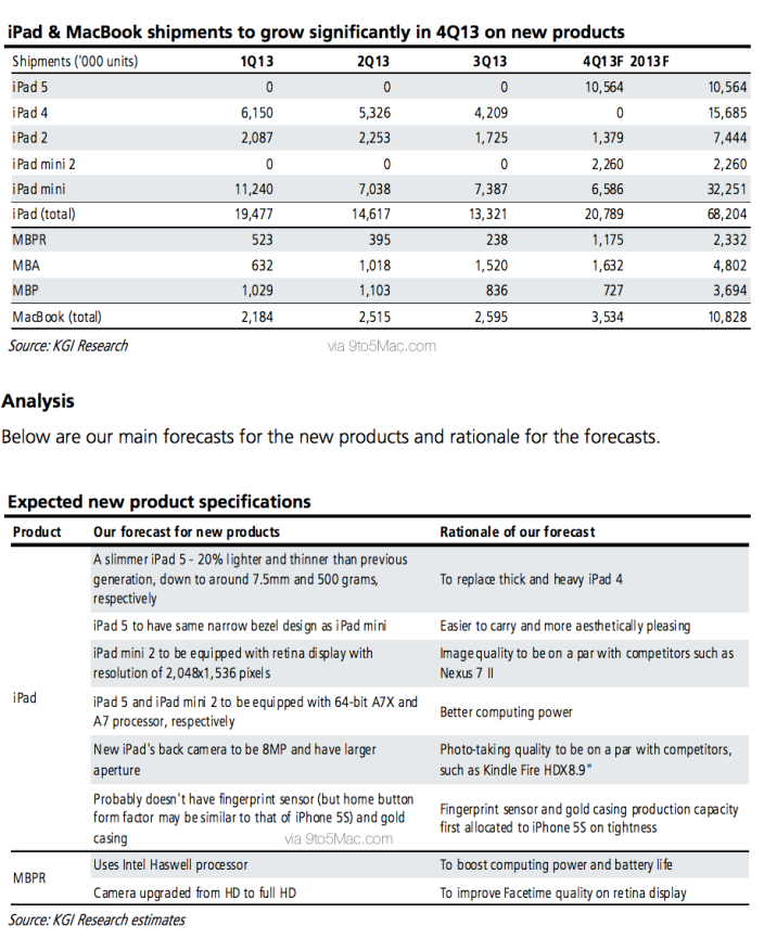 http://9to5mac.com/2013/10/19/apple-event-predictions-from-kgi-thinner-lighter-a7x-ipad-5-wimproved-camera-gold-option-no-touchid-a7-ipad-mini-wretina-haswell-macbook-pros/