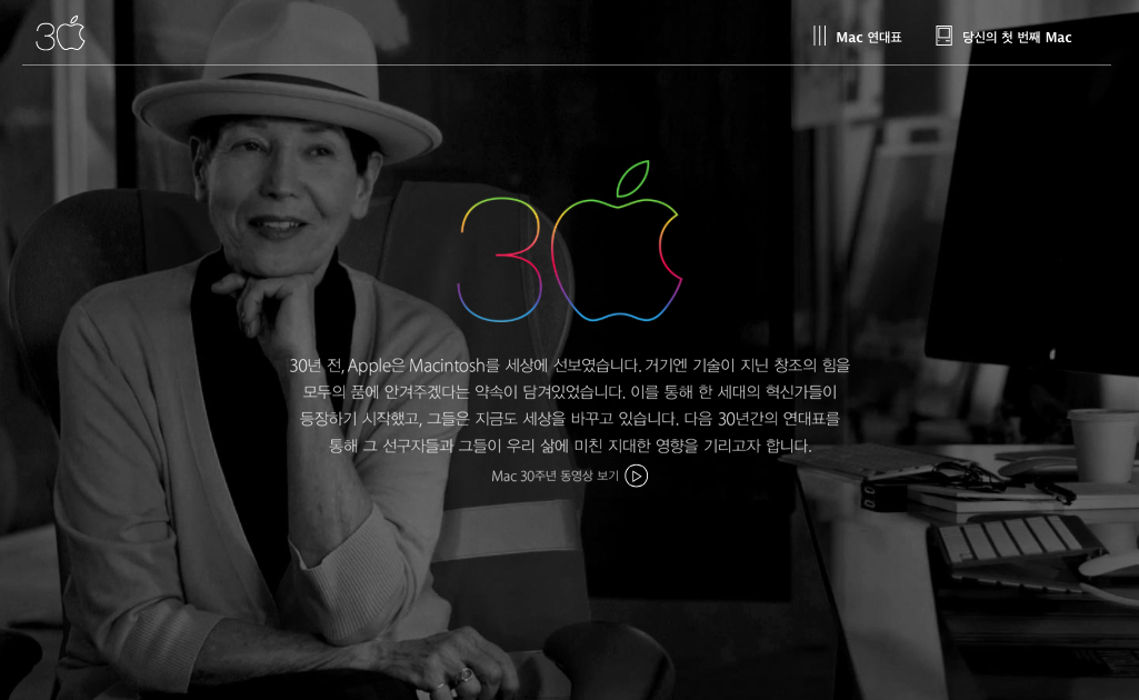 Apple은 Mac 30주년을 기념하여 페이지를 제작하였으며, 한국어 페이지가 드디어 추가로 오픈되고 있습니다.
