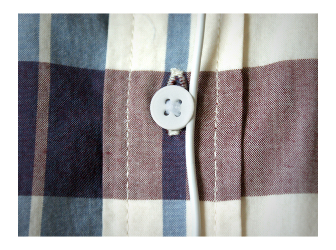 이어폰을 사용하다 보면 늘어트려진 선때문에 불편했는데, 평범한 옷의 단추에 작은 홈을 파내서 그곳에 이어폰 줄을 걸 수 있도록 한 아이디어 상품입니다.