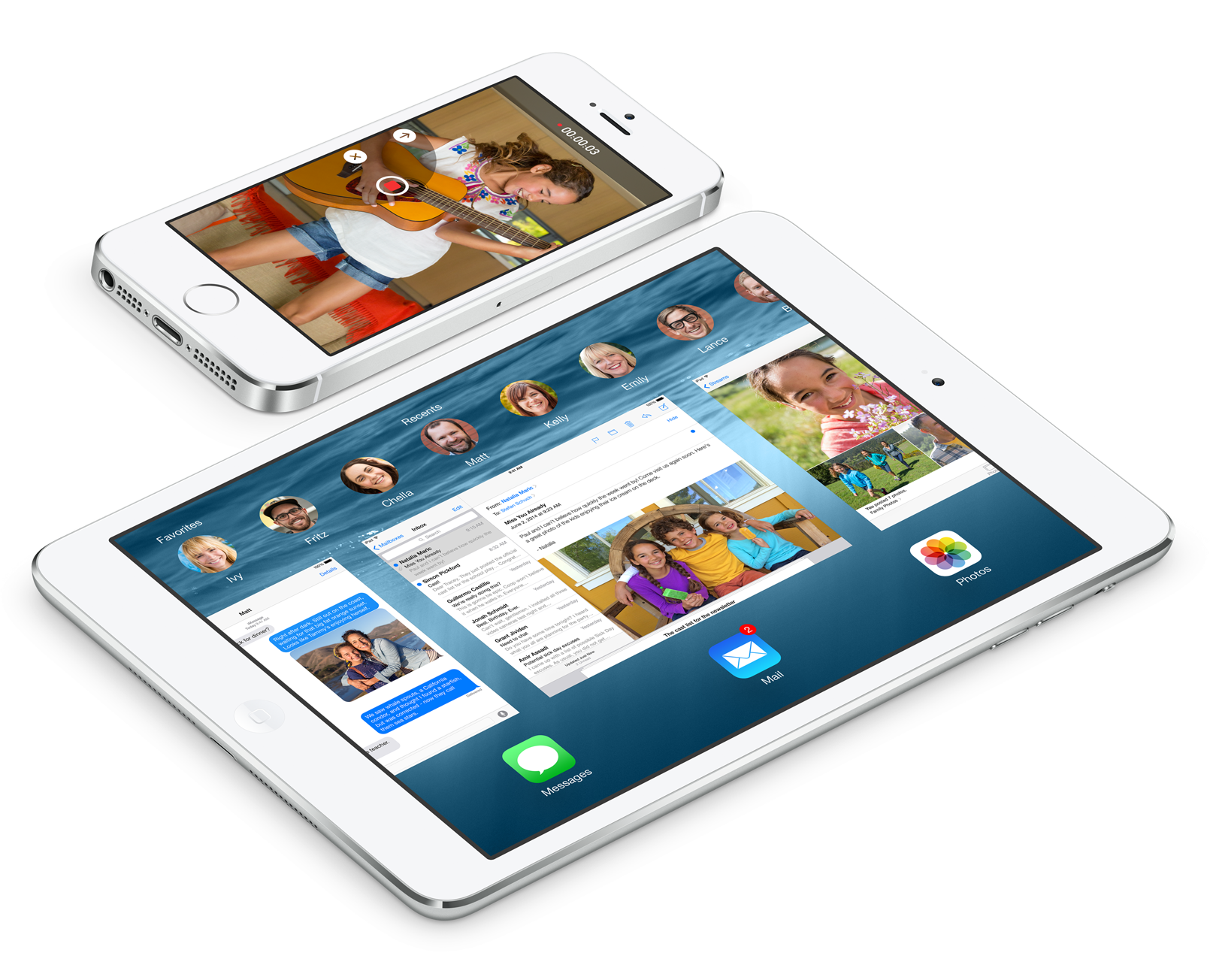 iOS 8에서 사진을 iCloud에서 관리되는 iCloud Photo Library, 스마트 구도 도구와 스마트 조정 기능 등이 추가 된 사진 앱, 음성 또는 동영상을 전송, 그룹 메시지를 교환하는 여러 사진이나 비디오를 한 번에 보낼 시간을 지정하여 위치 정보를 공유하는 것이 가능하게 된 메시지 등을 탑재하고있습니다.