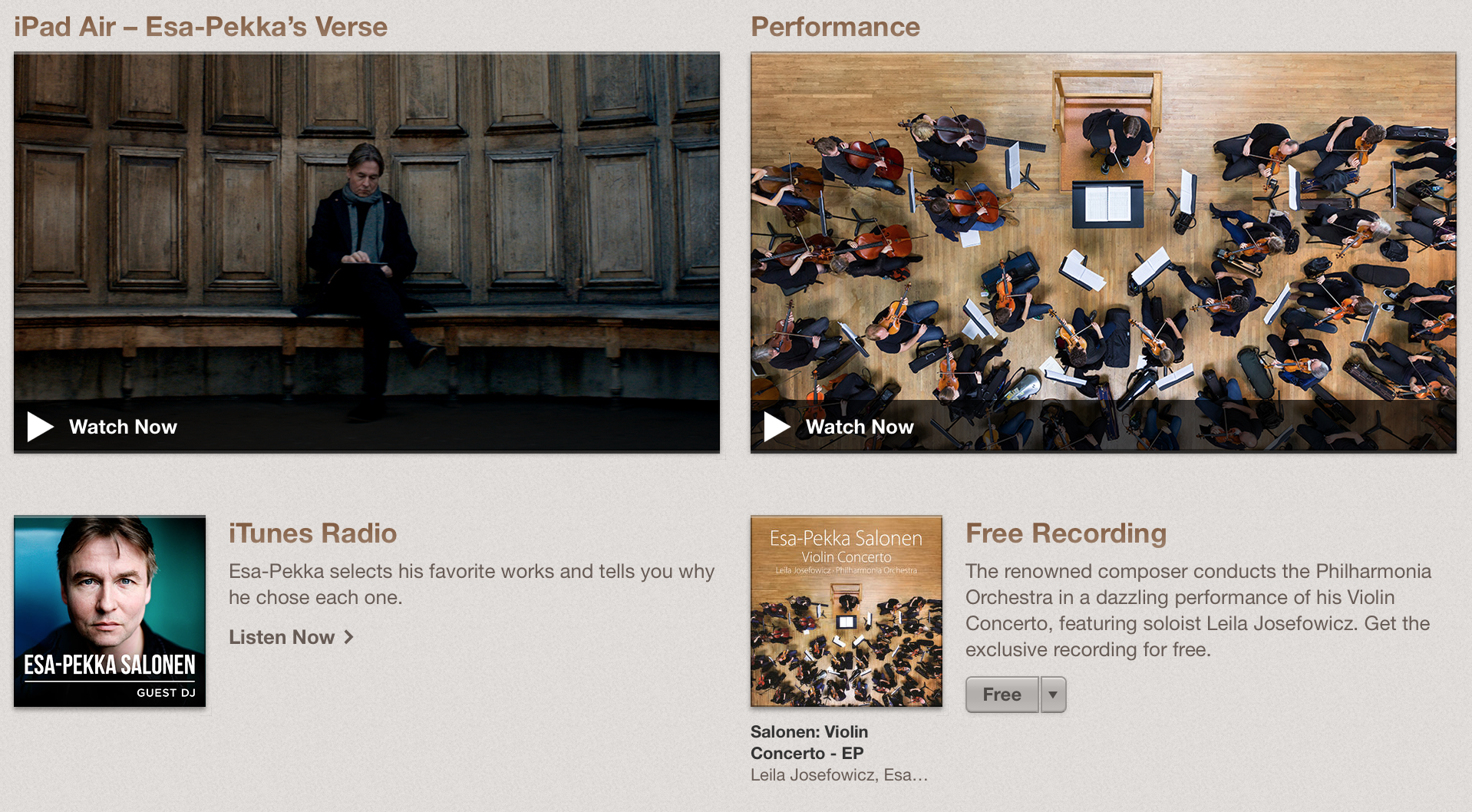iTunes는 iPad Air CM에 사용 된 Violin Concerto : I. Mirage 음원을 무료로 공개하고 있습니다.