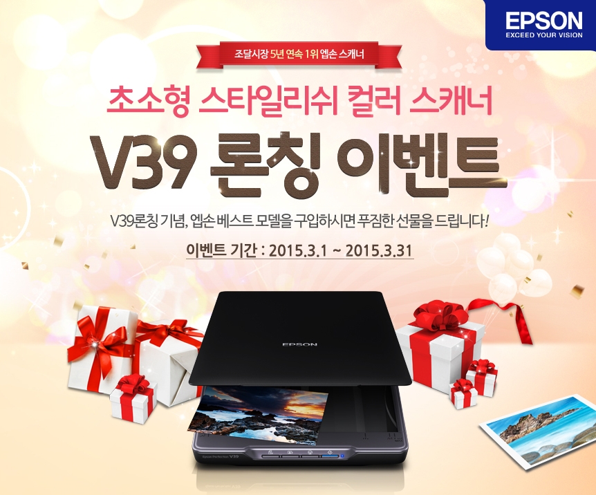 엡손은 온라인 공식 홈페이지(www.epson.co.kr)에서 ‘V39 론칭 이벤트’를 진행한다. 이번 이벤트는 3월 한 달 간 ‘퍼펙션 V39’를 비롯한 전문가용 평판형 스캐너 4종과 급지형 고속 스캐너 4종 구매자 대상으로 진행된다. 이벤트 진행 모델은 엡손의 인기 모델인 ‘엡손 퍼펙션’시리즈의 ‘V39, V37, V370Photo, V700Photo’와 ‘워크포스’ 시리즈의 ‘DS-520, DS-560, DS-760, GT-S85’이다.
