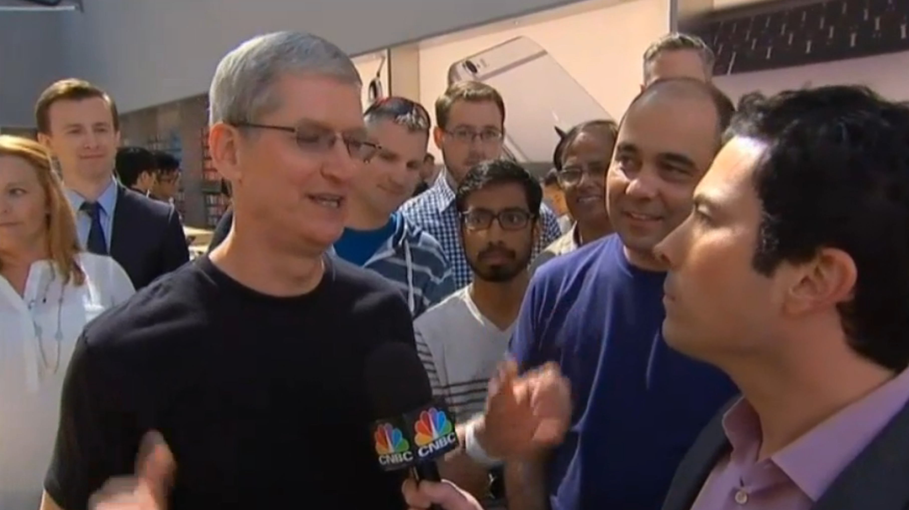 CNBC는 Apple Watch 피팅이 시작 된 Apple Store Palo Alto 점에 Tim Cook CEO가 찾아 고객들과 열심히 대화하고 있는 모습을 전하고 있습니다. 또한, CNBC 인터뷰를 통해 자신이 사용하는 Apple Watch를 보여 주면서 설명하고 있습니다.