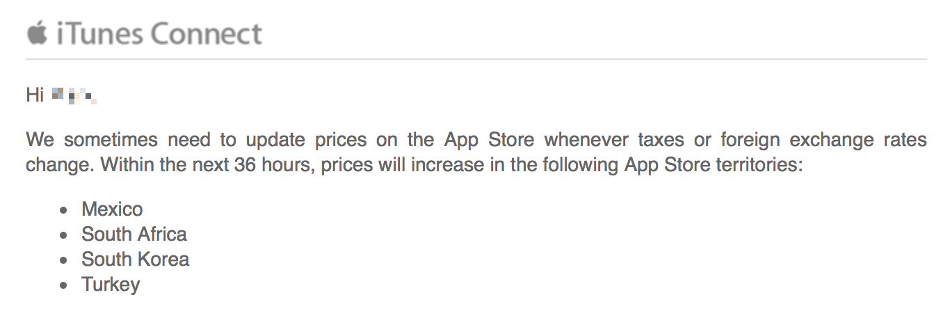 Apple은 개발자들에게 몇몇 국가의 앱스토어에 가격이 변경 될 것이라고 전했다고 합니다.