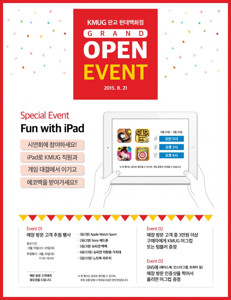 8월 21일 KMUG 판교 현대백화점이 첫인사를 드립니다 2025년 04월 16일2015년 08월 19일 작성자: KMUG 케이머그 http://kmug.co.kr/board/zboard.php?id=event&no=461&scode=kb 공유: X에 공유 (새 창에서 열림) X Facebook으로 공유하기 (새 창에서 열림) Facebook Pinterest에 공유 (새 창에서 열림) Pinterest 친구에게 이메일로 링크 보내기 (새 창에서 열림) 전자우편 Threads에 공유 (새 창에서 열림) Threads Bluesky에 공유 (새 창에서 열림) Bluesky 이것이 좋아요:좋아하기 가져오는 중... 관련 KMUG 케이머그에서 더 알아보기 구독을 신청하면 최신 게시물을 이메일로 받아볼 수 있습니다. 이메일 주소 입력… 구독