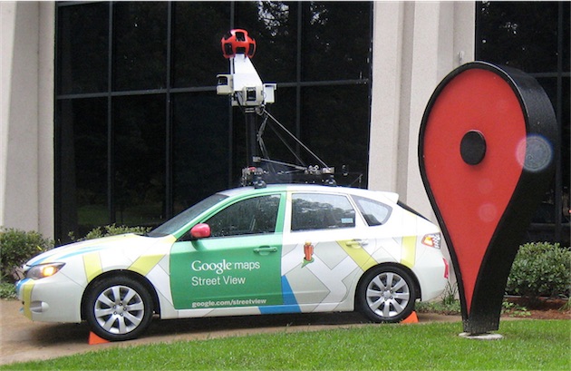지붕에 장비를 장착한 Google Street View Car