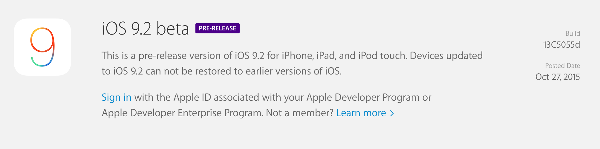 Apple은 iOS 9.2 beta 업데이트(빌드 13C5055d)를 개발자에게 제공하고 있습니다.
