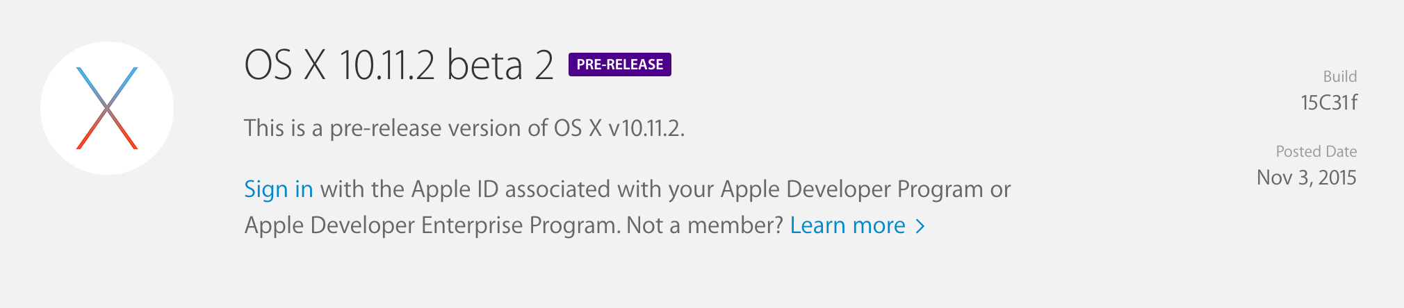 Apple은 OS X 10.11.2 beta 2 (빌드 15C31f) 업데이트를 개발자들에게 제공하고 있습니다.