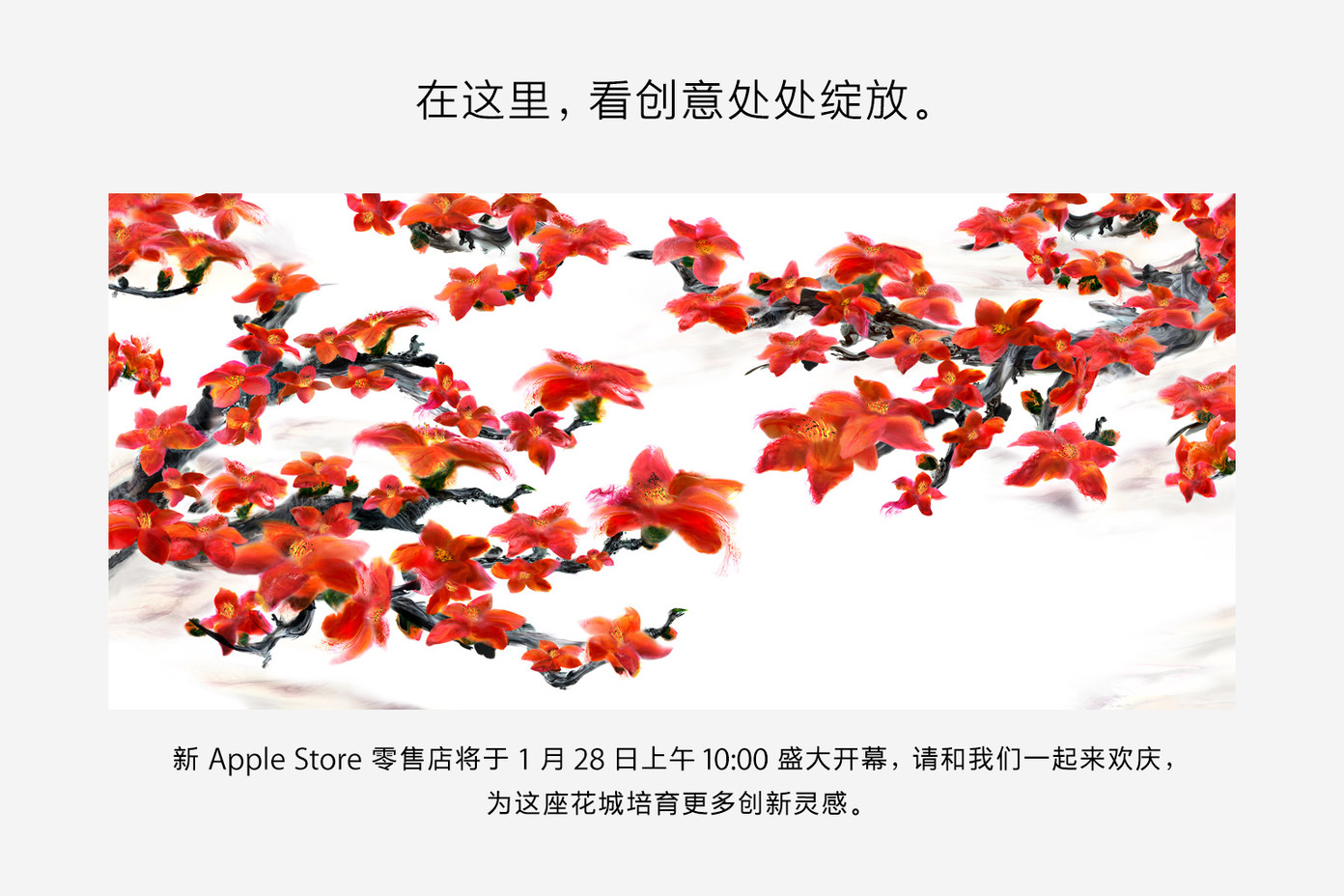Apple은 1월 16일 토요일 중국 남경시의 쇼핑센터 애상 천지에 새로운 직영점 Apple Store, Nanjing IST을 오픈하고, 1월 28일 목요일에는 광주의 쇼핑센터 하늘环广공장에 Apple Store, Parc Central 오픈한다고 안내합니다.