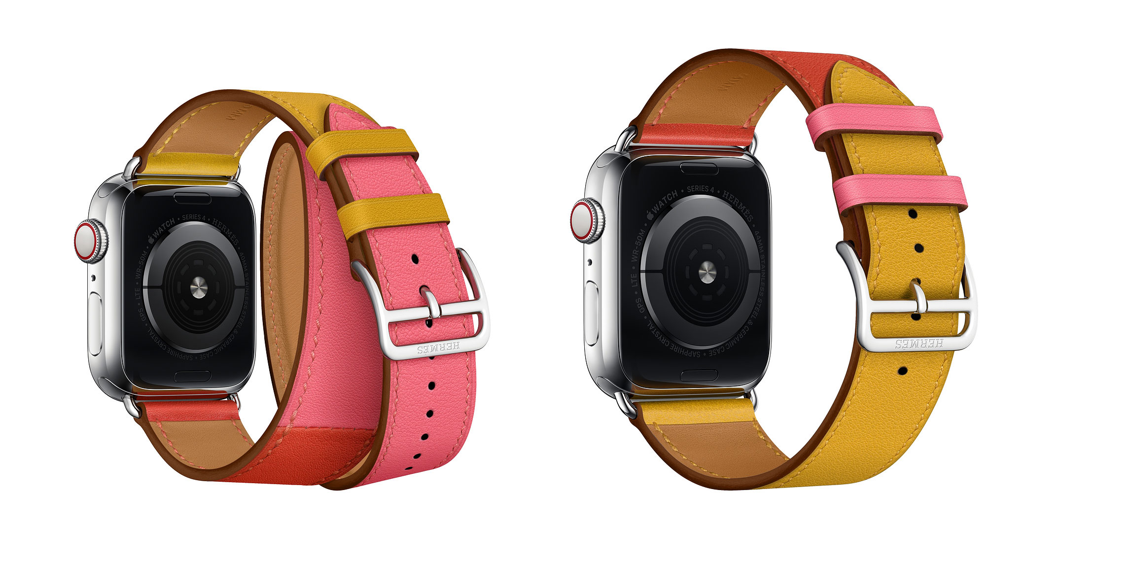 Apple에서 Apple Watch Hermès 가죽 스트랩의 새로운 색상을 추가 투입했습니다. 색상 명칭은 색앙브르/카푸신/로즈 아잘레 라고 하며 40mm는 더블 투어 형식 44mm는 싱글 투어 모양으로 되어 있습니다.