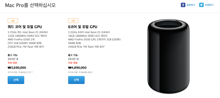 Apple Online Store에서 Mac Pro의 출하 예정일이 기존 3~5일 이내에서 24시간 내로 변경 되었습니다.http://store.apple.com/kr/buy-mac/mac-pro