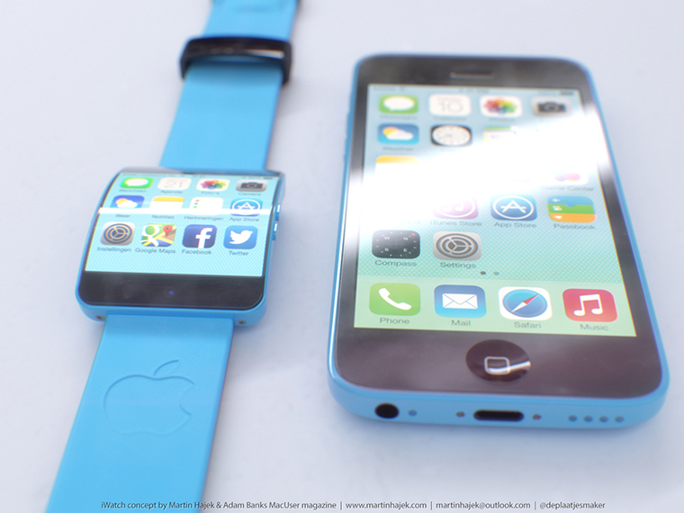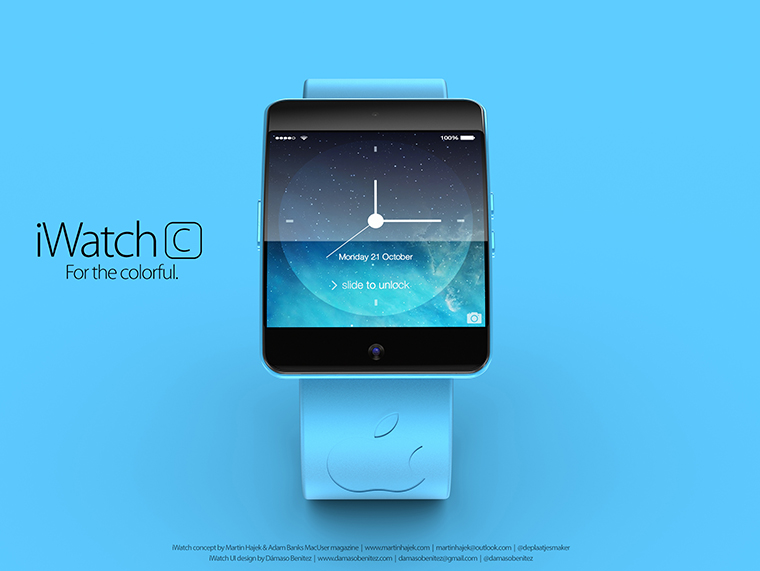 제품은 2종류로 지금의 iPhone 5s와 iPhone 5c 모델의 디자인과 유사한 스타일이며, 이름도 iWatch C, iWatch S 라는 이름으로 디자인 되어 있고,